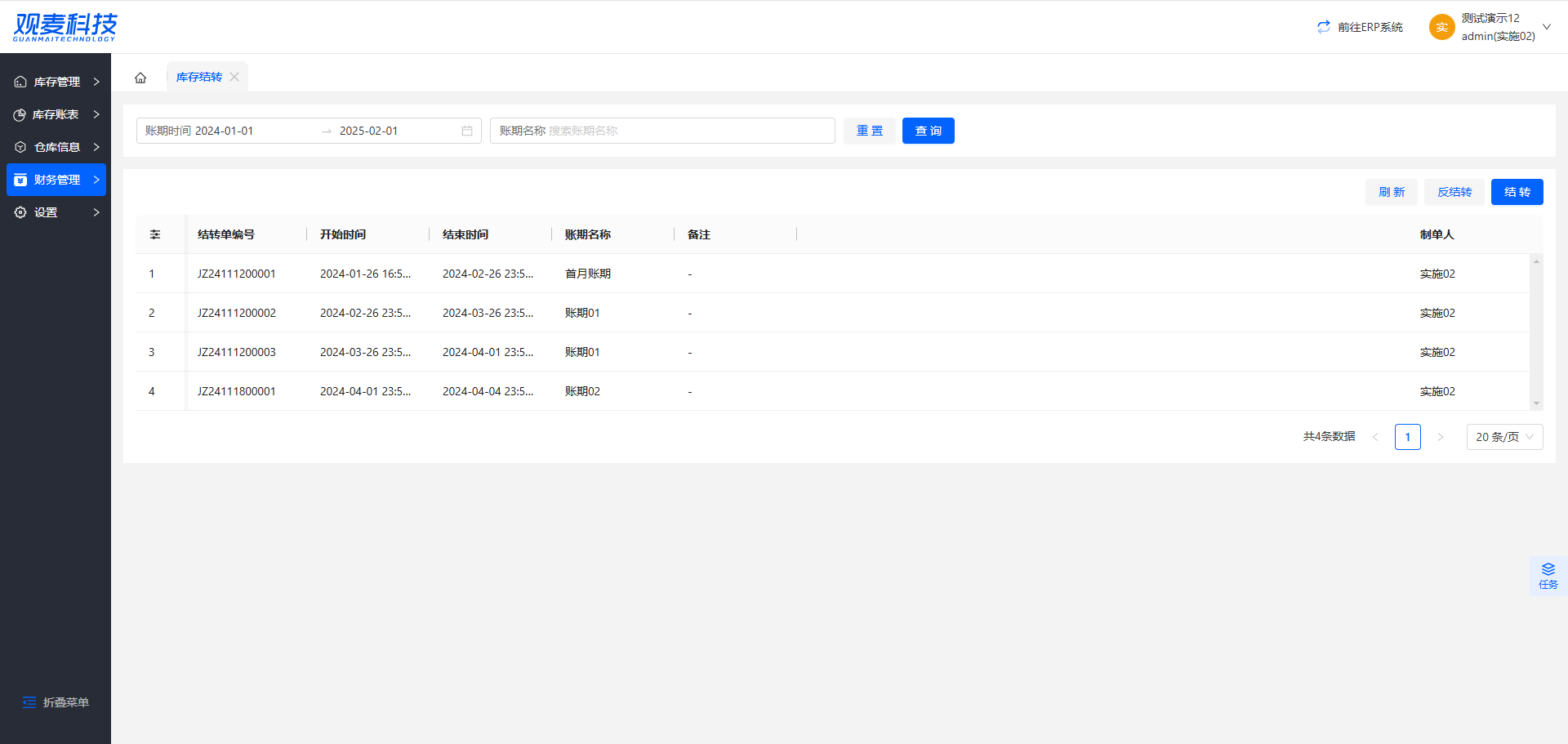 库存结转列表