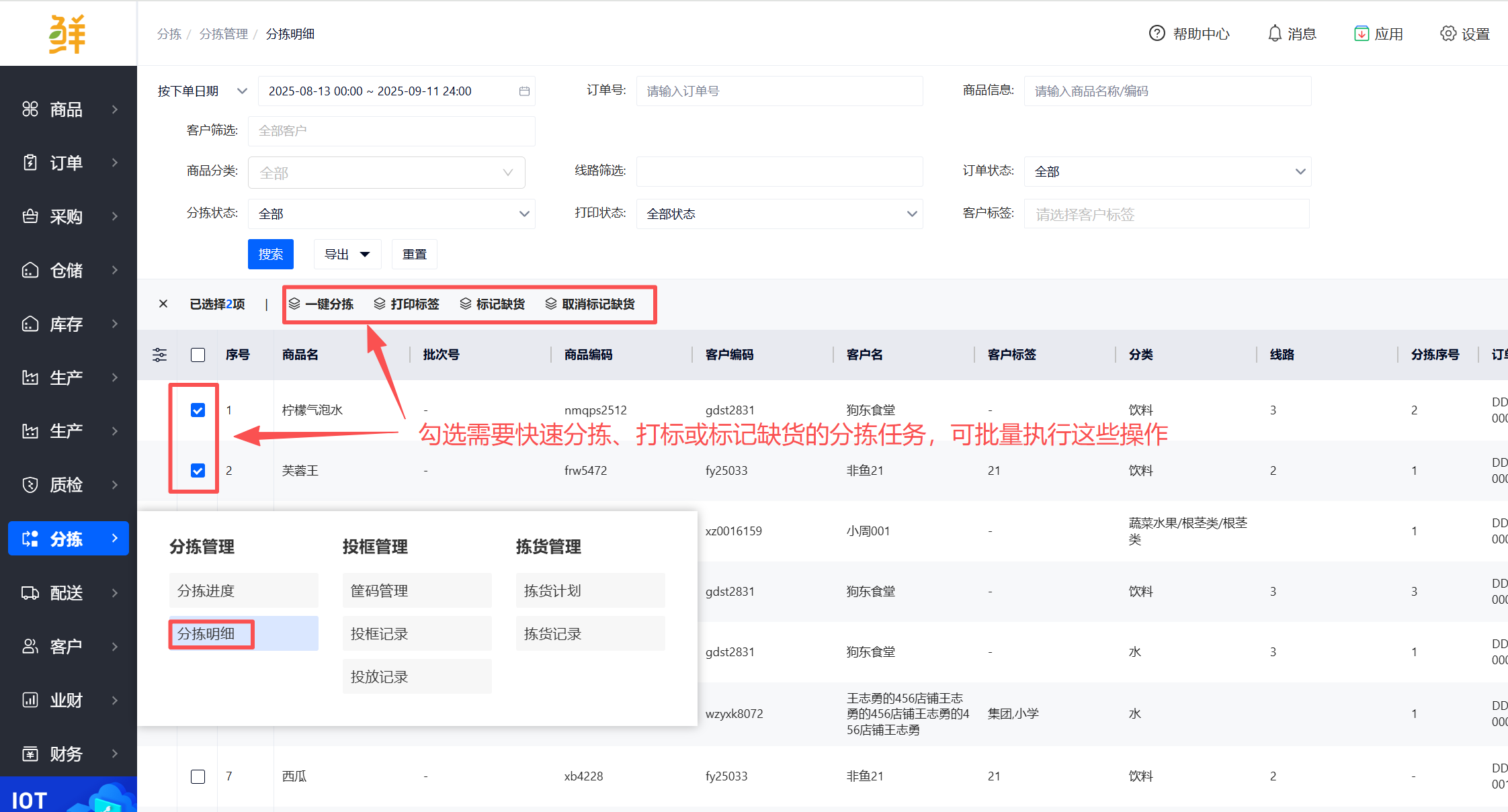 客户希望在【ERP】进行批量分拣,批量打标,提高工作效率