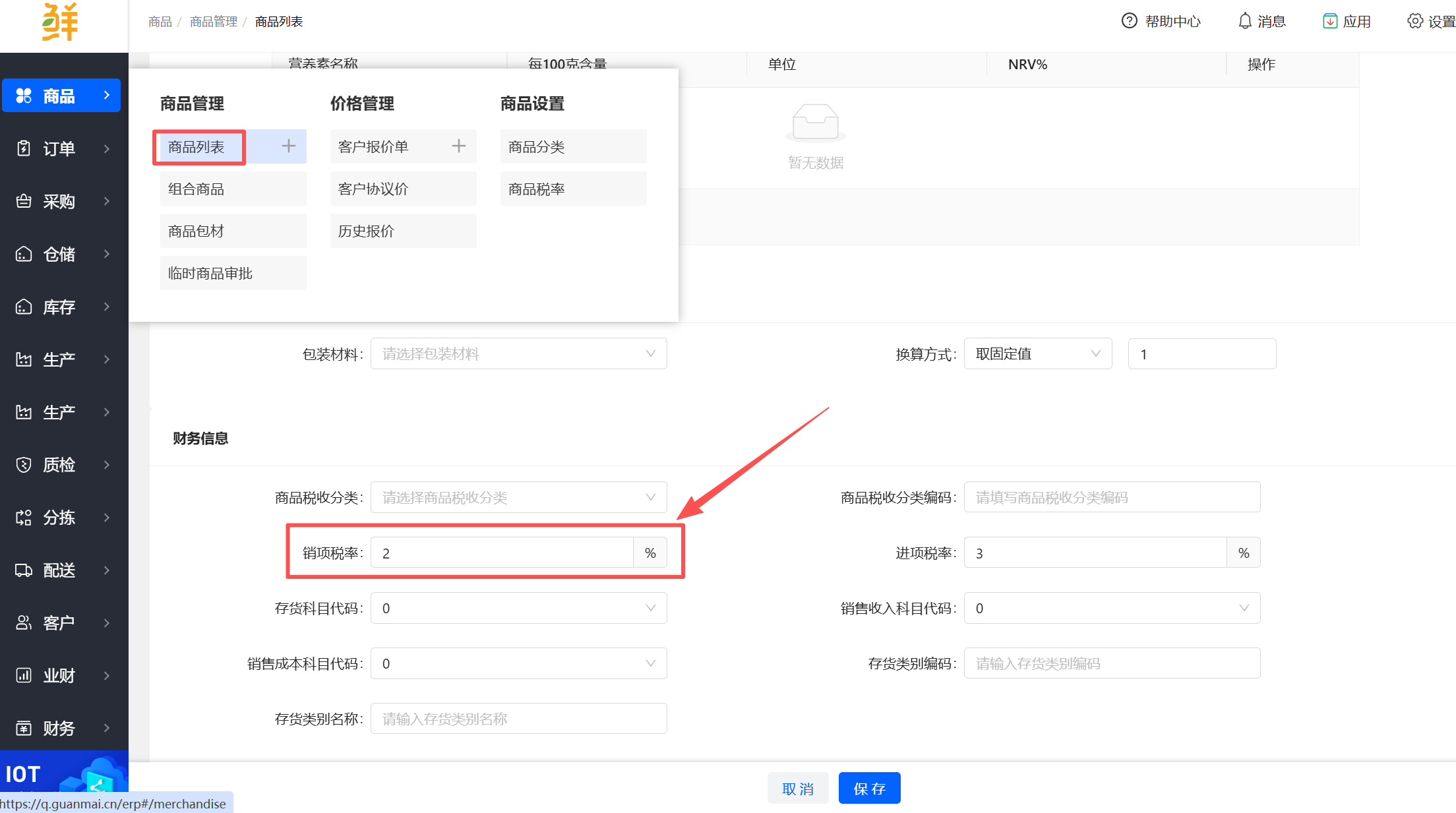 【ERP】商品->商品管理->商品列表->编辑商品信息