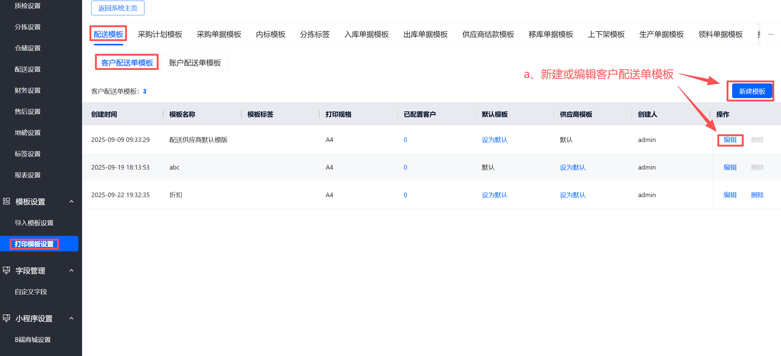 【ERP】设置 -> 模板设置 -> 打印模板设置 -> 配送模板 -> 客户配送单模板