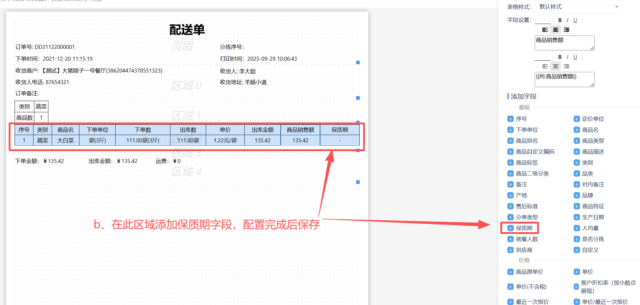1、配置配送单打印模板 —— 配送单模板增加保质期字段