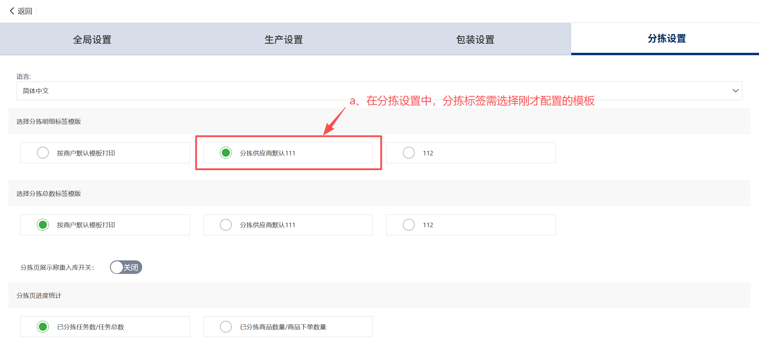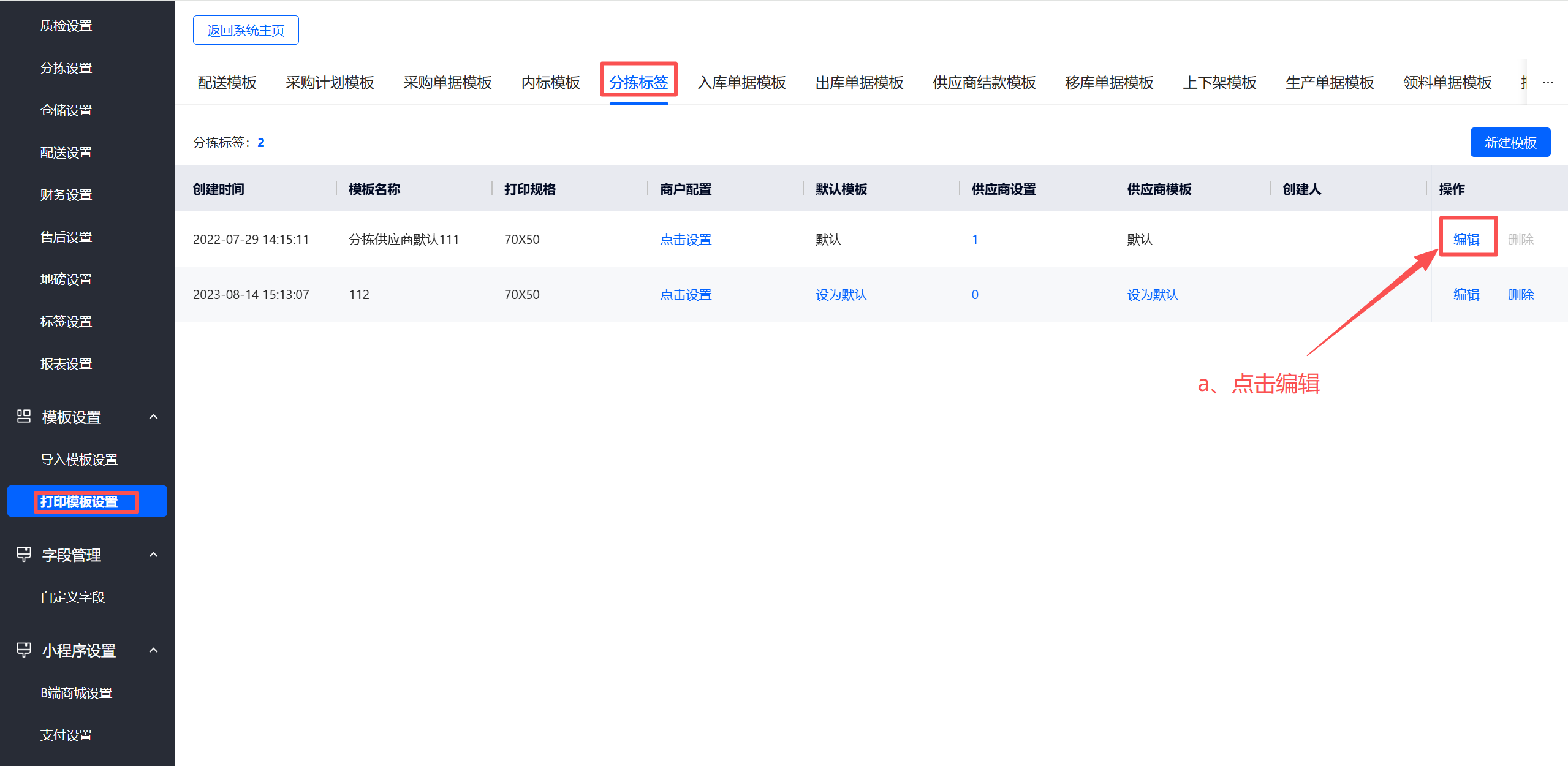 【ERP】设置 -> 模板设置 -> 打印模板设置 -> 分拣标签
