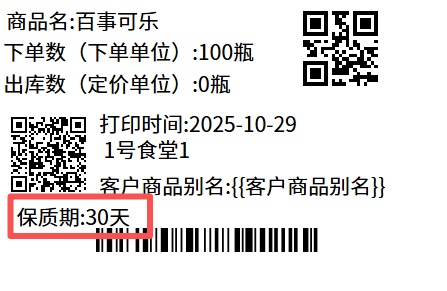注意:需选择设置了保质期字段的模板,才可打印出保质期字段