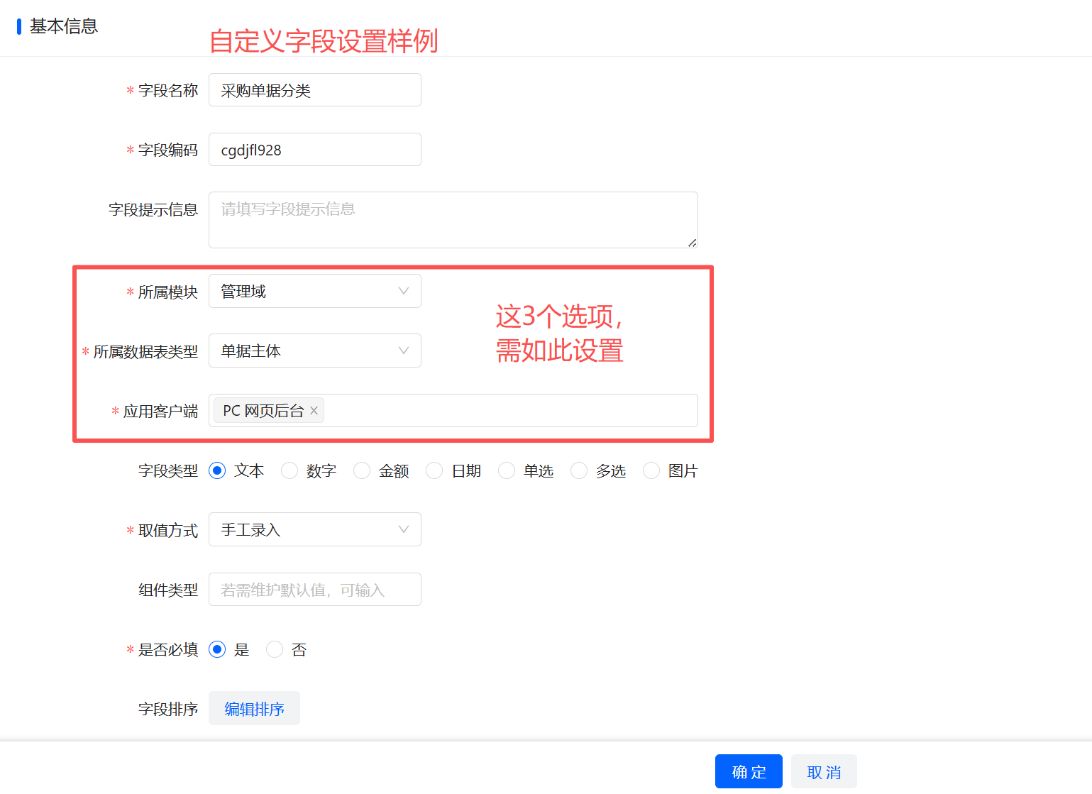 【ERP】设置->字段设置->自定义字段->新建自定义字段
