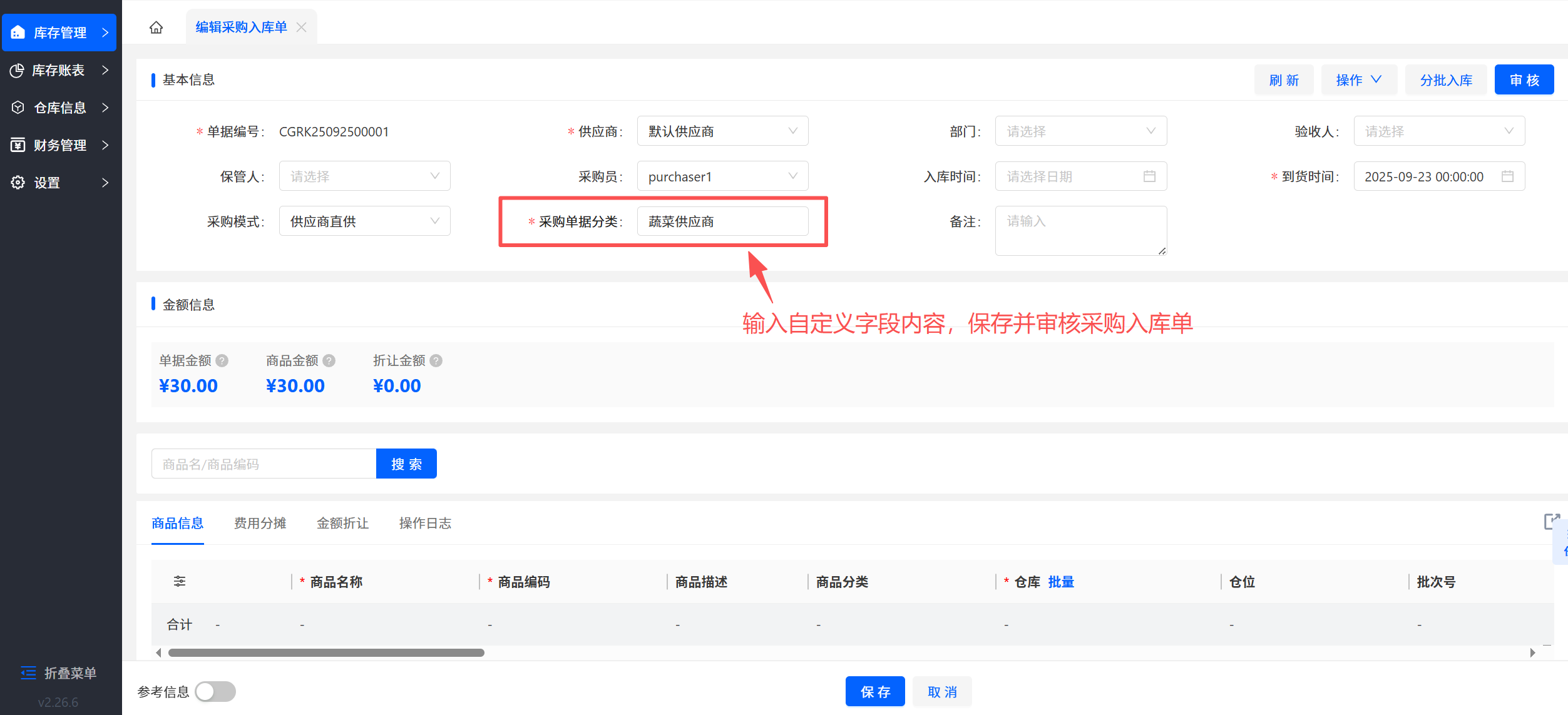 【WMS】库存管理->出入库管理->采购入库单->编辑采购入库单